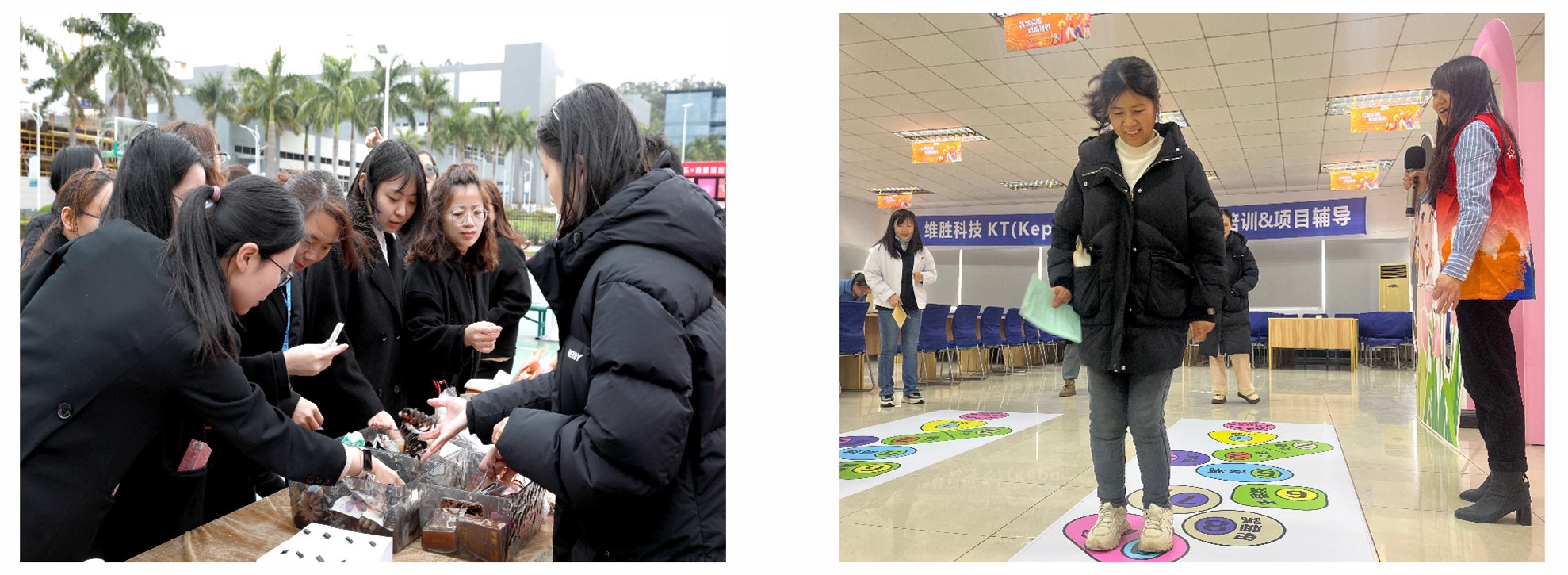 还记得小时候的跳房子的快乐吗?在活动现场,工作人员提前用彩纸贴出一格格房子,参与者们跃跃欲试,按照图案提示,小心翼翼地在方格间跳跃穿梭,一时间,欢笑声、加油声交织回荡。跳房子游戏成功勾起大家的童年回忆,让每个人沉浸在简单纯粹的快乐之中,现场满是温馨与美好。